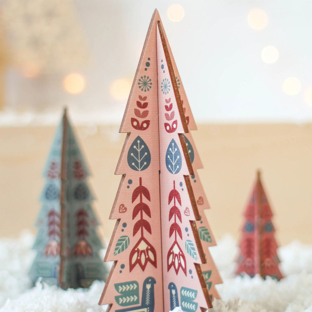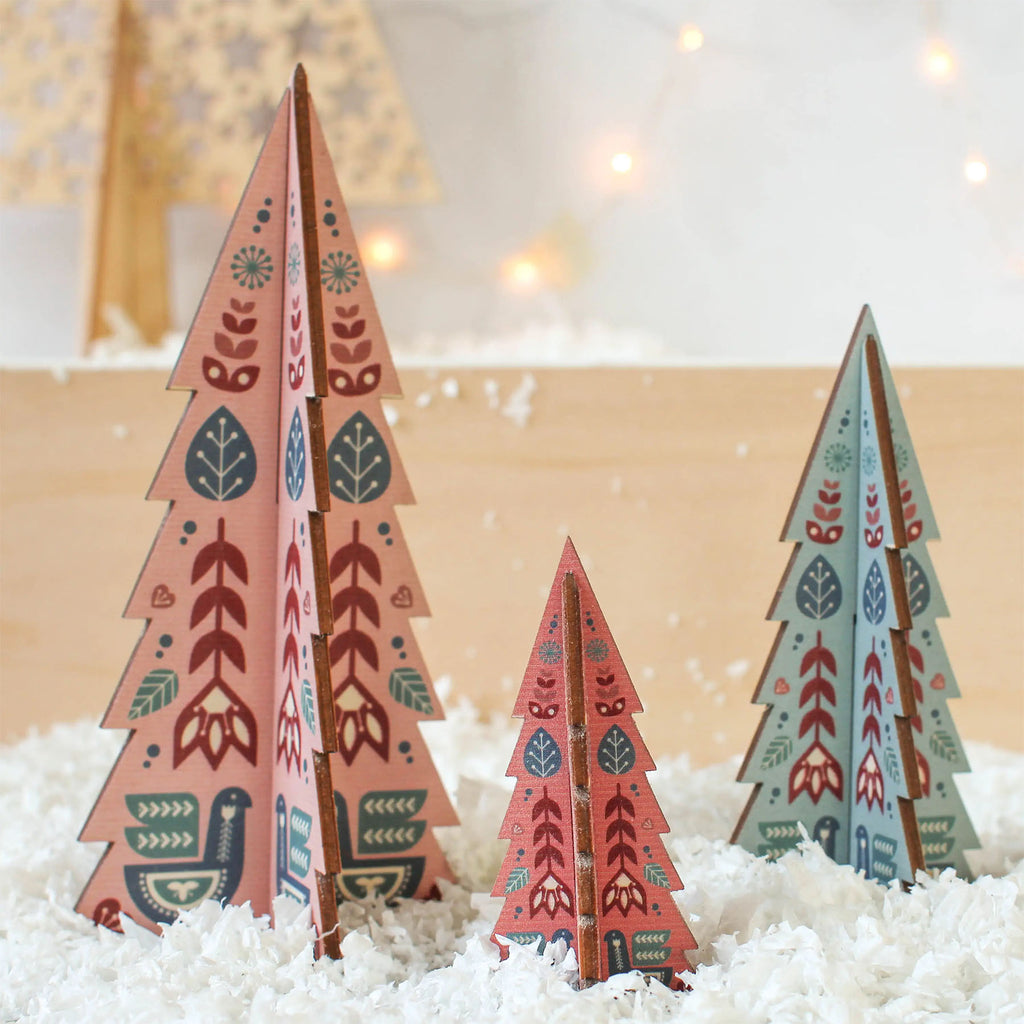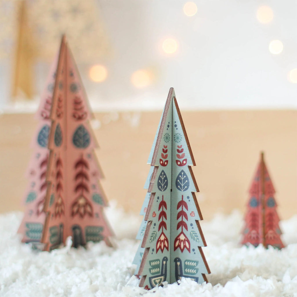 Each set comprises three Christmas trees: Large blush, medium blue and small pink. Cut from sustainably sourced birch wood, each tree arrives in two pieces which simply slot together. They're easy to store and can be safely packed away in the new year ready for many more stylish, Scandi Christmases! We think a few of these sets grouped together along the length of a dining table, sideboard or windowsill look stunning.